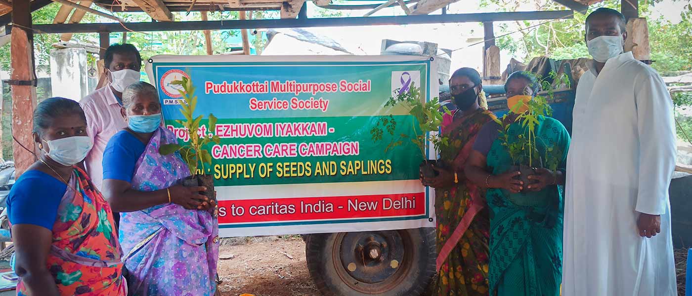 Through the support of Caritas India we have been implementing this project. Awareness creation, Screening Tests, Networking with government Cancer Institute and donating tree saplings and seeds to the affected patients to get nutritious vegetables, greens and fruits are the main activities of the project . It is an ongoing project
